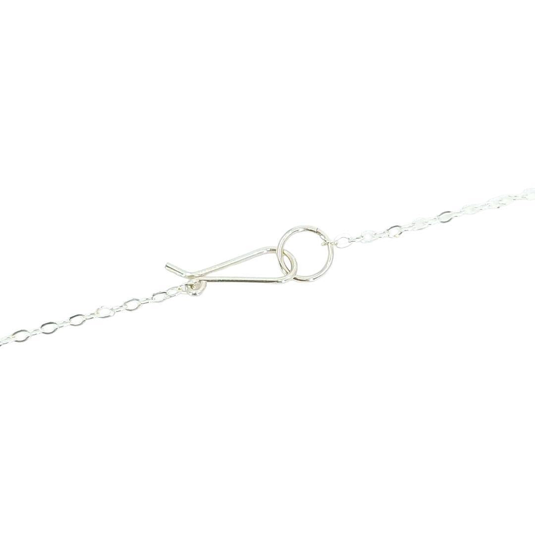 • Layered resin, wood backing, bright sterling silver chain