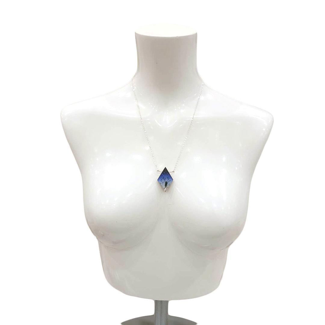 • Layered resin, acrylic paint, wood backing, bright sterling silver chain
